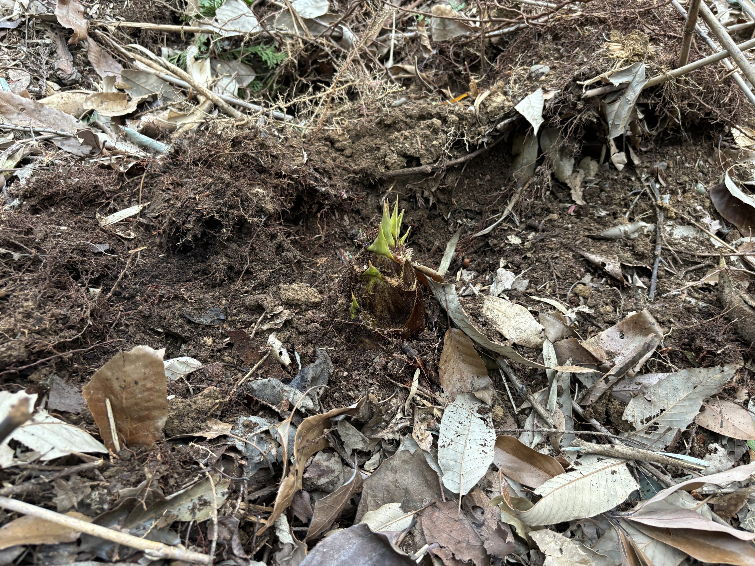 4月12日雨が続いたのでたけのこが出てきてないかなと知り合いの山にお邪魔しました。結果はまだ数は少ないものの出始めのたけのこがチラホラ顔を覗かせていたので早速掘り進めることに!!