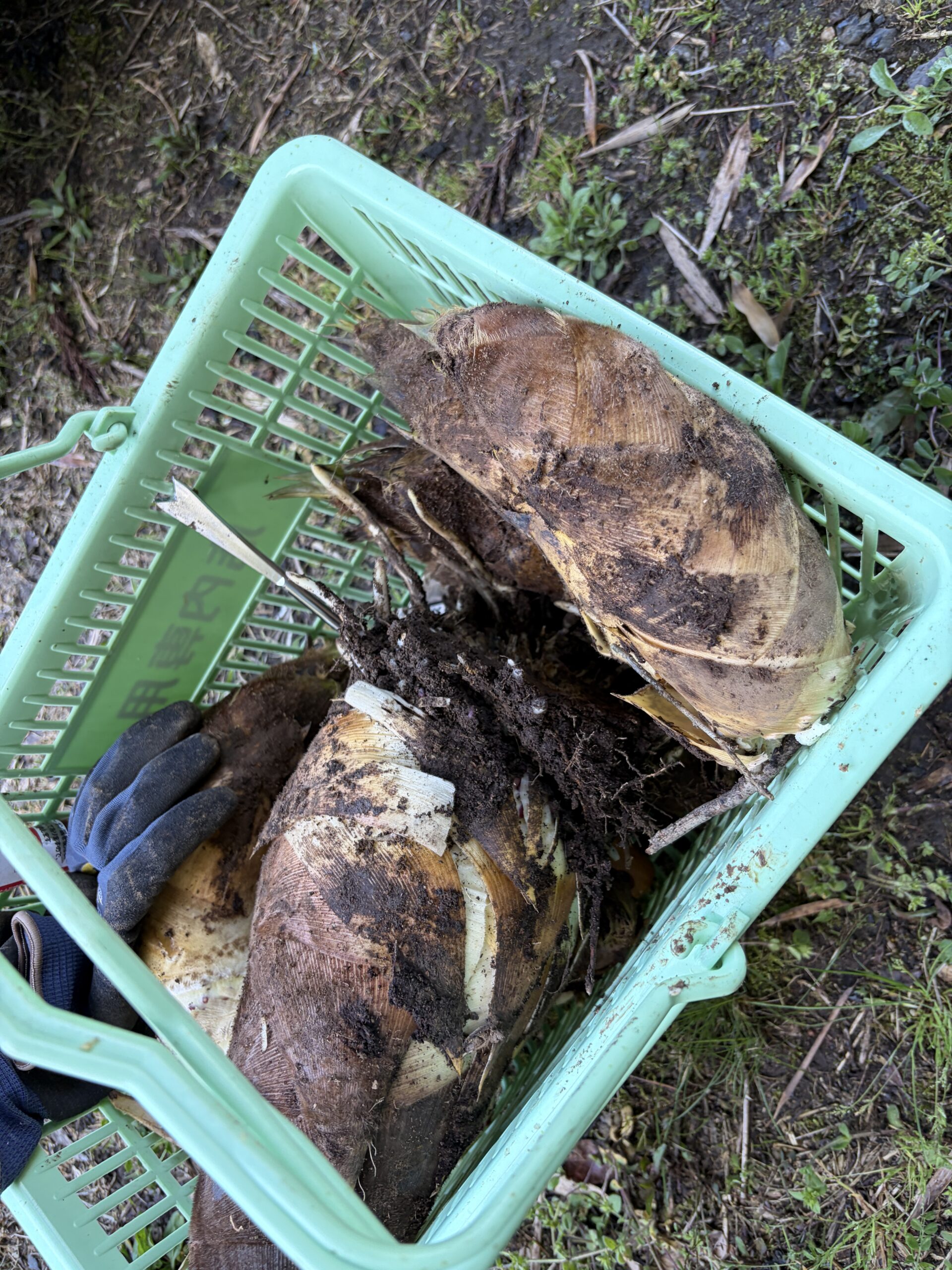 後はなるべく早く帰ってアク抜きをするだけ!土を取り除いて大きな鍋の中で米ぬかと唐辛子を入れて1時30分煮込みます。その後完全に冷めるまでそのまま放置しておくとふっくら仕上がるそうです。我が家ではタケノコの刺身、タケノコご飯、天ぷら、などで頂きました😋